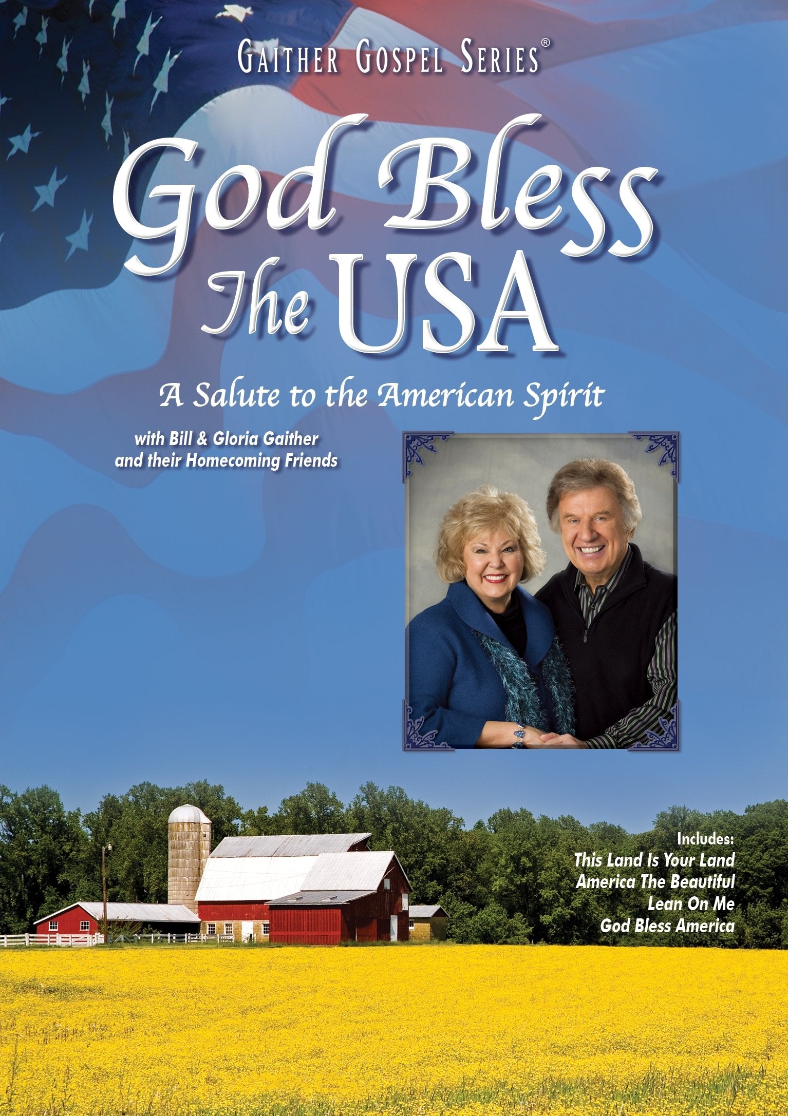 This all-American video scrapbook offers a music salute to all the things that make America great. Hosted by Bill Gaither, God Bless The USA features an all-star lineup of beloved artists singing songs that honor our nation s very foundation faith, hard work and community. 1. This Land Is Your Land (feat. Sue Dodge, Ernie Haase & The Talley Trio) 2. America the Beautiful (feat. Gaither Vocal Band) 3. Back Home Again (feat. Stephen Hill & Joy Gardner) 4. God Bless the USA 5. What a Wonderful World 6. A Few Good Men (feat. Terry Blackwood, Sherman Andrus, Reggie Smith, Wesley Pritchard & Guy Penrod) 7. Amazing Grace 8. I Pledge My Allegiance 9. Lean On Me (feat. Lillie Knauls) 10. Love in Any Language (feat. Jessy Dixon) 11. God Bless America 12. Rock of Ages (feat. Joy Gardner, Stephen Hill & Vestal Goodman)