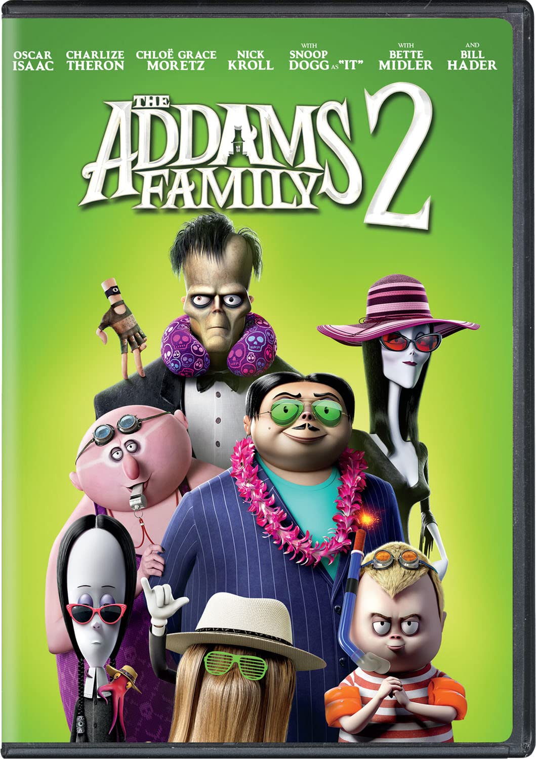 Just because they're mysterious and spooky, that doesn't mean they don't have the same problems as "normal" families. With Wednesday (voiced by Chloë Grace Moretz) and Pugsley (Javon Walton) growing up and spending less time at home, Gomez (Oscar Isaac) and Morticia (Charlize Theron) plan a wacky cross-country road trip for the whole Addams Family-in a haunted camper, no less-in an effort to spend some quality time together. Bette Midler, Snoop Dogg also supply voices to this computer-animated sequel. Widescreen; Soundtrack: English.